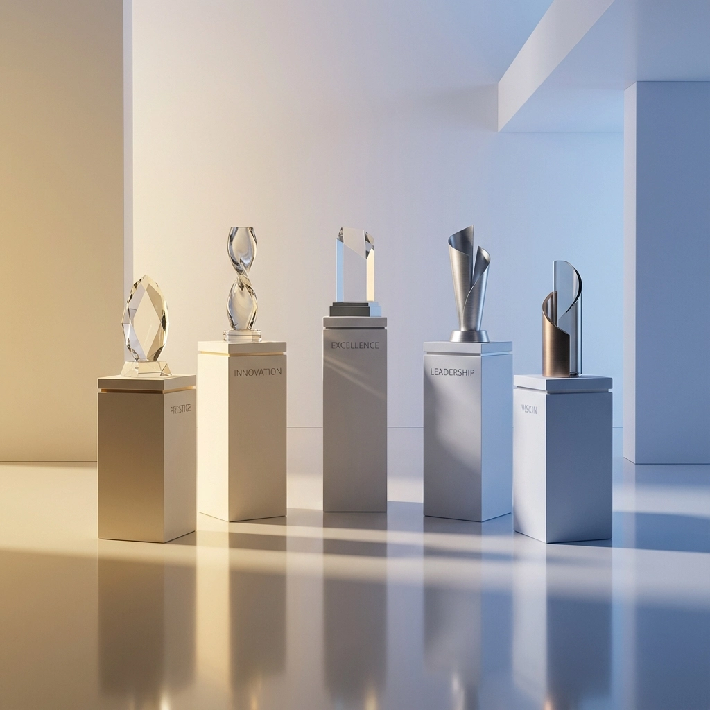 Acrylic awards provide modern, customizable options that work beautifully for innovation or creativity categories.